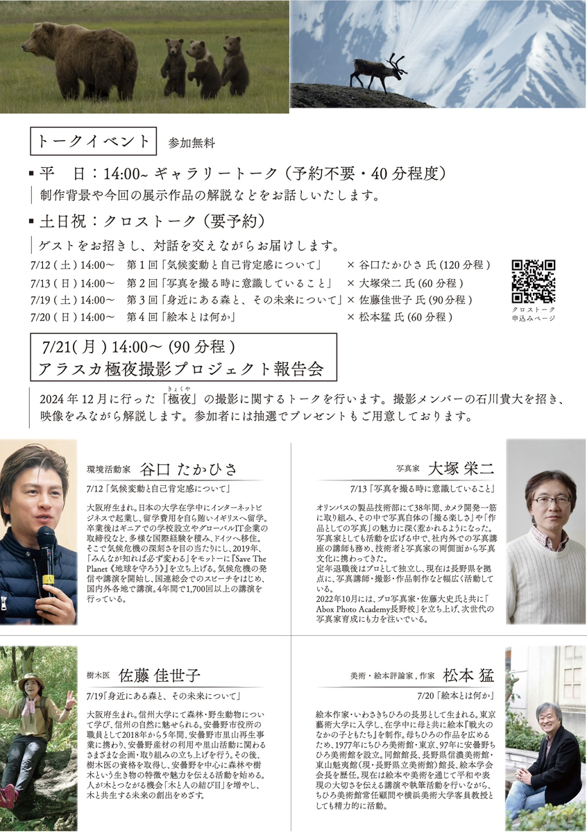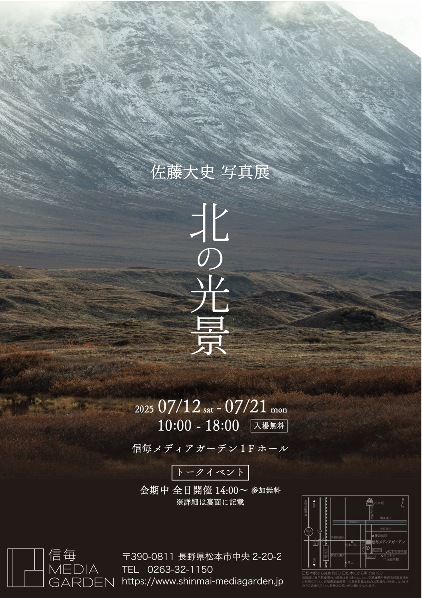 2025/06/02 7月12日〜21日、松本メディアガーデンで写真展を行います。写真展クロストークイベントの詳細はこちらから。裏面はこちらです。